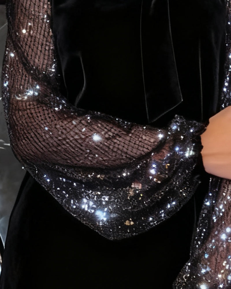 Crafted from a smooth, lightweight fabric that feels soft on the skin and moves gracefully with every step. The delicate patchwork design adds texture and interest, while the balloon sleeves create a flattering silhouette that complements mature figures beautifully.